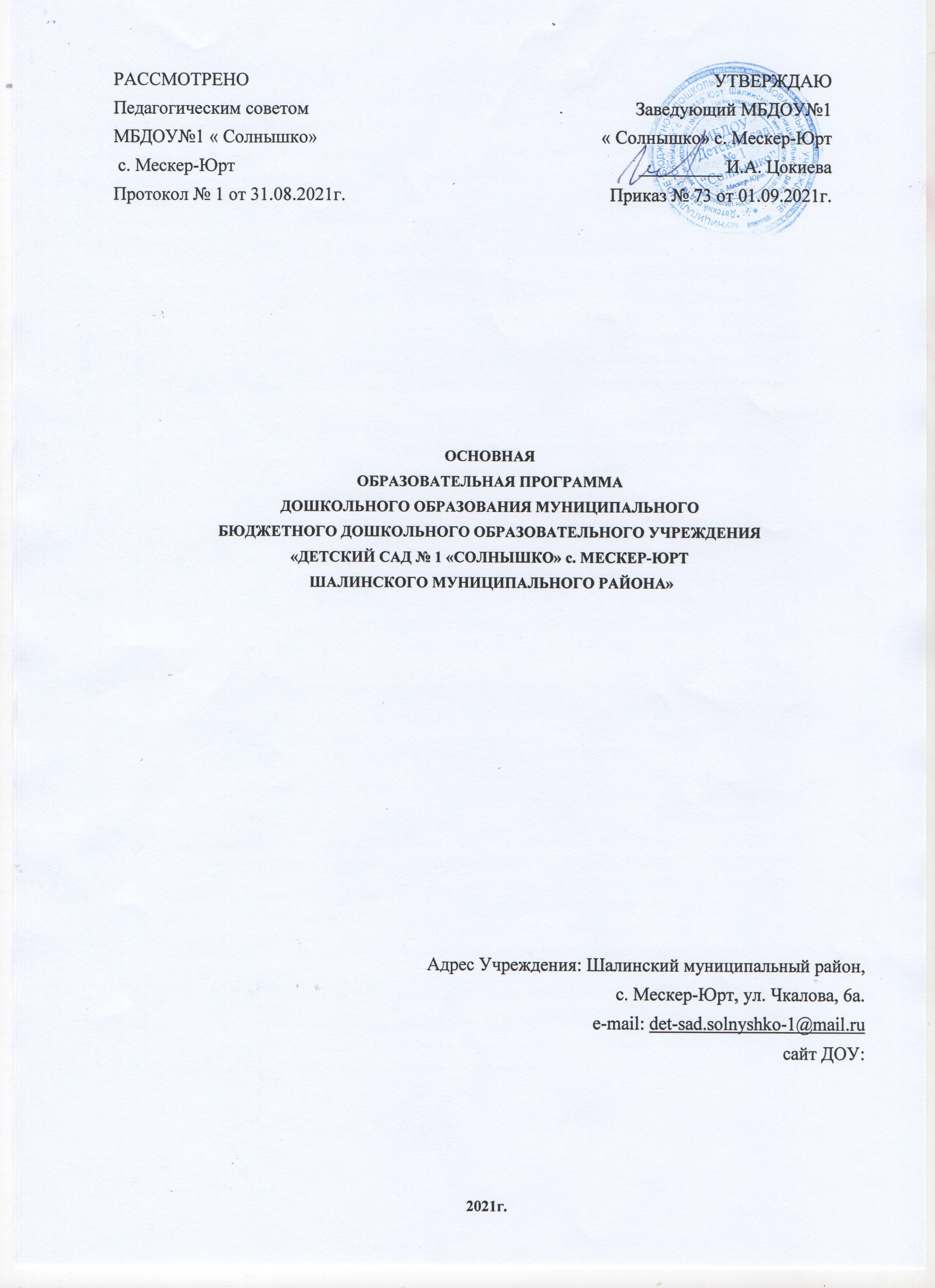 Учебный план МБДОУ «Детский сад №1 «Солнышко» с. Мескер-Юрт Шалинского муниципального района» (далее – ДОУ) реализующий программы дошкольного образования разработан на основании нормативных документов: